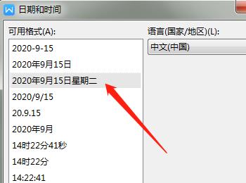 4. 如图,就会弹出日期和时间的窗口,格式列表中,有多种类型可以选择,选择想要的格式后,点击底部的确定按钮,就会在文档中显示日期了。