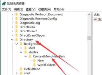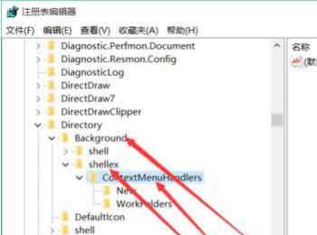 4. 第四步在下拉列表中,根据下图箭头所指,依次点击【Directory-Background–shellex-ContextMenuHandlers】文件夹。