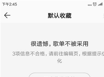5. 第五步在跳转的页面中,如果提示信息不合格的话,根据下图箭头所指,点击【再次优化歌单】选项。