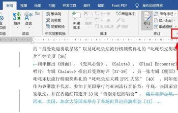 3. 第三步,在审阅工具栏中,点击修订功能右下角的箭头按钮。