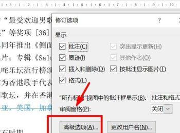4. 第四步,在弹出的修订选项对话框中,点击高级选项按钮。