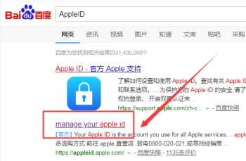 2. 第二步,在搜索结果中,点击Apple ID的官网链接。