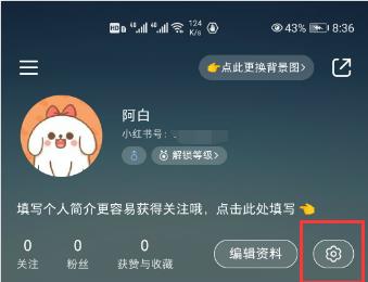 3. 在打开的我的页面,点击右上方的齿轮图标,进入“设置”页面。