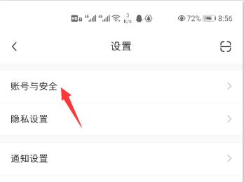 4. 如图,在打开的设置页面,选择“账号与安全”选项,打开。