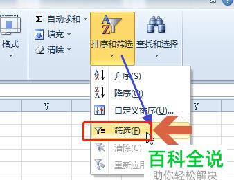 2. 接下来,在开始下,依次点击“排序和筛选—筛选”选项。