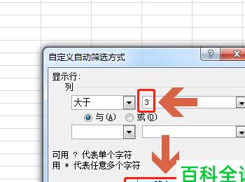 4. 如图,在弹出的窗口中,大于栏右侧的输入框中输入3,最后点击确定,下图就显示筛选结果了。