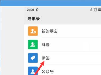 3. 进入通讯录页面后,找到标签选项,打开。