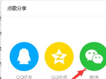 4.第四步,我们可以看到如下图所示的点歌分享界面,点击箭头所指的微信选项。