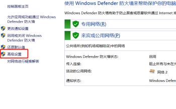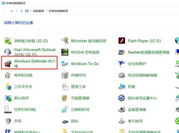 1.第一步,双击或者右击打开控制面板图标,接着点击windows defender 防火墙选项,然后点击页面左侧的高级设置选项。