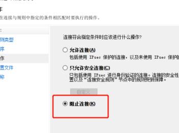 4.第四步,我们可以看到如下图所示的页面,点击阻止连接左边的选项框,接着点击右下角的下一步选项,默认配置文件,并点击右下角的下一步选项,然后填写名称,并点击页面底部的完成选项。