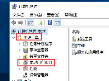 2. 在打开的计算机管理页面,依次点击左侧的“系统工具”—“本地用户和组”选项。