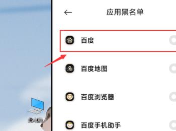 5. 第五步在跳转的页面中,找到需要设置的应用。根据下图箭头所指,小编以【百度】为例。