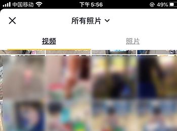 2. 在打开的拍摄页面,点击右下方的上传选项,在打开的相册中,点击左下角的“多段视频”选项。