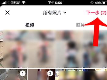 3. 选择多段视频后,点击右上角的下一步按钮。