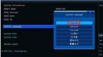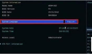 1. 第一步,在华为bios的System页面中,将System Language设置为English(英文)。