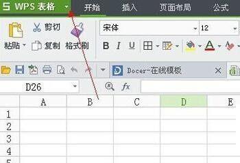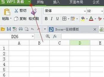 在表格编辑窗口中左上角找到【WPS表格】图标,点击后面的倒三角形按钮。如图所示。