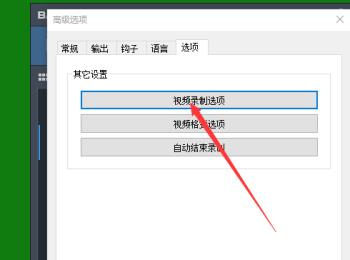3. 第三步,在下图所示的高级选项窗口中,点击页面顶部的选项,接着点击箭头所指的视频录制选项。