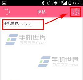 2)然后输入自己要发贴的内容点击【>】,最后选择分类点击【√】就可以了。(如下图)