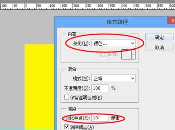 直接路径填充的操作方法就是,在用钢笔工具建立图形之后,在路径中,选中路径图层直接右键路径填充就可以,同样的在选择之后弹出来的设置面板中,也可以直接设置羽化值;还要做的修改就是在内容中修改成颜色;