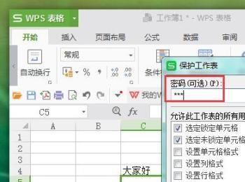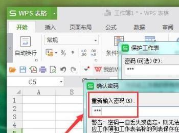 点击“保护工作表”选项,在新弹出的界面中,输入保护密码,然后点击下方“确认”选项,如图所示: