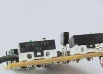 相信大家经过拆解已经对鼠标的内部结构比较了解了,所以安装相对来说就比较容易。但安装小铜片以及微动开关外壳还是要单独说一下,装小铜片的时 候一定要先让有触点的那头进去,再卡好中间的弹片,最后把弹片稍微压缩一下就可以装上去了。安装微动开关外壳的时候,一定把电路板倒过来,要从下往上安装 (图8),这样图3中的微动开关上的塑料块才不会掉下来。