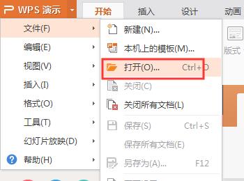 1. 首先第一步打开电脑中的【WPS演示】窗口,根据下图所示,依次点击【开始-打开】选项。