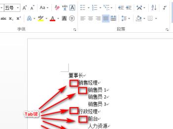 1. 首先第一步打开电脑中的word软件,新建一篇空白文档。我们将公司职位从高到低按照下图所示进行输入,同一级别的各个职位放置在同一列对齐,下一级别的职位从下一行开始并以tab键作为区分,可以参考下图进行输入。