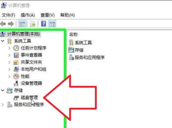 用户在”磁盘管理 (树项目)”上左键单击(在”计算机管理”中)。