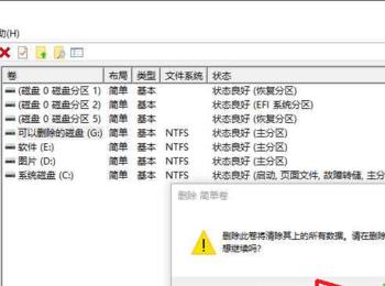 用户在”是(Y) (按钮)”上左键单击(在”删除 简单卷”中)。