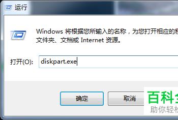 2. 第二步根据下图所示,先在方框中输入【diskpart.exe】,接着点击【确定】选项。
