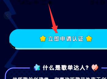 4. 如图,在打开的页面,选择下方的【歌单达人认证申请】按钮点击。