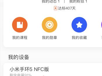 2. 之在打开的我的页面,我的设备下,找到小米手环5NFC版的设备,点击进入。