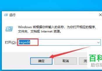2.第二步,按键盘上的winr组合键,接着点击输入框,并输入regedit,然后点击箭头所指的确定选项。