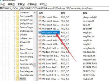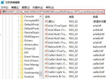 3.第二步,来到下体所示的注册表编辑器窗口后,根据以下路径,打开fonts文件夹:【计算机\HKEY_LOCAL_MACHINE\SOFTWARE\Microsoft\Windows NT\CurrentVersion\Fonts】