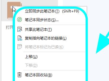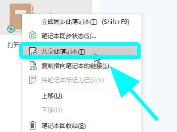 3. 第三步在弹出的菜单栏中,根据下图箭头所指,点击【共享此笔记本】选项。