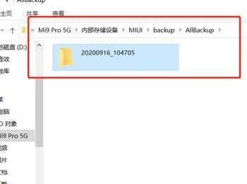 8.第八步,来到设备页面后,打开内部存储设备中的MIUI文件夹,接着打开backup文件夹中的allbackup,就可以看到自己备份的数据了,接着拖动备份的数据到电脑上即可。
