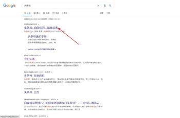 3. 第三步在弹出的搜索结果中,根据下图箭头所指,点击【头条号 官网】链接。