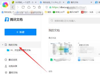 3. 如图,进入腾讯文档的主页面后,点击左上方的【我的文档】选项。