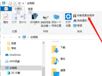 2. 第二步打开【此电脑】窗口后,根据下图箭头所指,找到并点击【卸载或更改程序】选项。