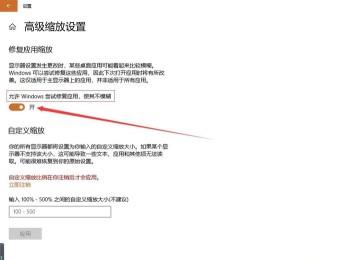 3.第三步,点击高级缩放设置选项,在下图所示的高级缩放设置界面中,打开允许Windows尝试修复应用,使其不模糊下面的开关,接着关闭该页面。
