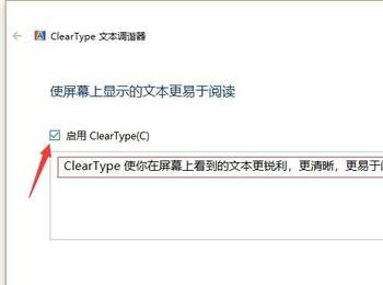 6.第六步,我们可以看到如下图所示的页面,点击启用 clear type左边的选项框,接着点击右下角的下一步选项。