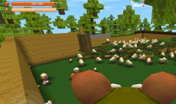 之后,我们先用麦子引导牛,麦子会吸引牛的。