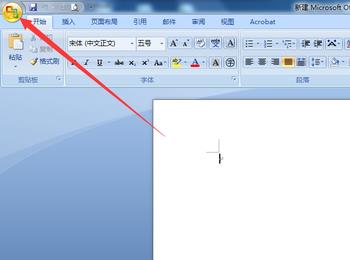 2.第二步,来到下图所示的Word软件主页面后,点击左上角箭头所指的office图标。