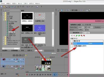 1.第一步,双击或者右击打开vegas软件,接着拖动致谢字幕到时间轴上,然后可以看到下图所示的弹出窗口,如果没有该窗口,那么点击绿色的属性图标即可。