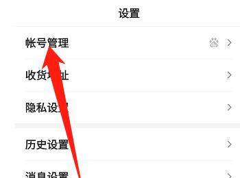 3. 第三步在【设置】页面中,根据下图箭头所指,点击【账号管理】选项。