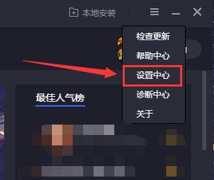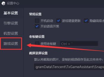 3. 如图,在弹出的设置中心窗口中,点击左侧的“游戏设置”选项。