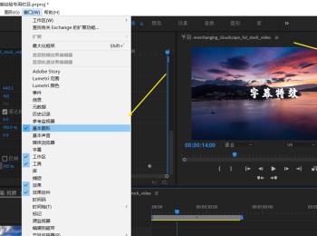 3. 然后点击上方的窗口选项,勾选基本图形,在打开的窗口中,可以编辑字幕