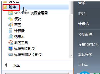1、点击开始菜单——所有程序——附件;