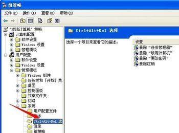 在组策略管理器中依次打开: 用户配置-管理模版- 系统——Ctrl+Alt+Del选项