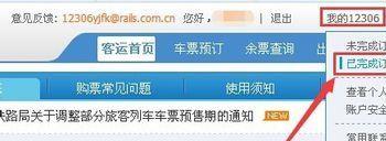 登录后可以看到还是在最上面那里,用户名右边有个“我的12306”,鼠标放到此处会显示一些下拉选项,其中有个“已完成订单(改/退)”的选项,点击打开:
